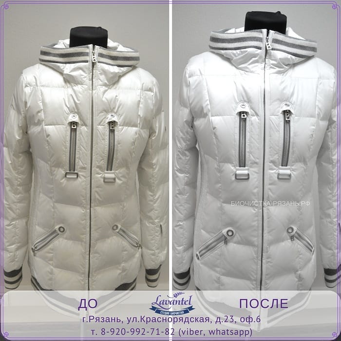 • Все виды тканей, используемых для создания верхней одежды, от пиджака до пуховика. Устранение загрязнений и восстановление первоначальной яркости цвета позволит Вам радоваться любимой вещью долгое время!