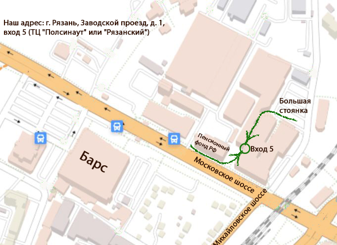 Адрес: г. Рязань, Заводской проезд, д. 1, вход 5 (ТЦ "Полсинаут" или "Рязанский")
